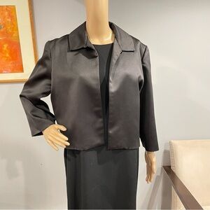 Jim Hjelm Occasions gorgeous black satin bracelet sleeve open front jacket 16