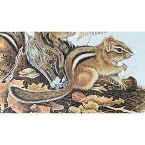 Bring the charm of North American wildlife into your space with this signed lithograph by Kentucky artist Jim Oliver, titled Eastern Chipmunks (Tamias Striatus).