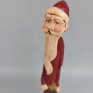 Jim Shore 1990 Folk Art 10” Pencil Santa Claus Tree Hearts JS Signed Christmas