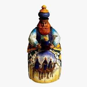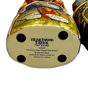 This Jim Shore nativity Three Wisemen figurine set from 2003, titled "Let Every Heart Prepare Him Room" (item #113256), is in excellent condition in the original box. This set of nativity figurines features three beautifully detailed wisemen bearing gifts, all meticulously crafted with Jim Shore's signature folk-art style. This set would make a wonderful addition to any Jim Shore nativity collection or a thoughtful gift for a loved one. Don't miss out on the opportunity to make this charming piece a part of your holiday decor! # 4948
