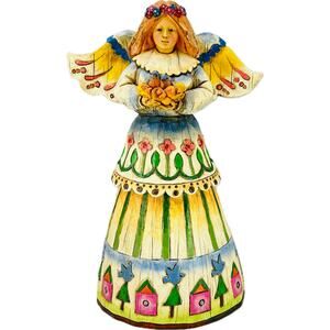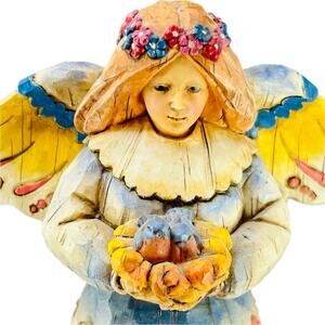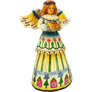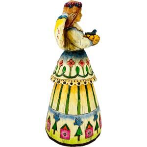 This beautiful 2002 Jim Shore Heartland Creek ANGEL OF LOVE Figurine features an angel holding 2 bluebirds in a nest. Her dress features flowers and birdhouses. #108924