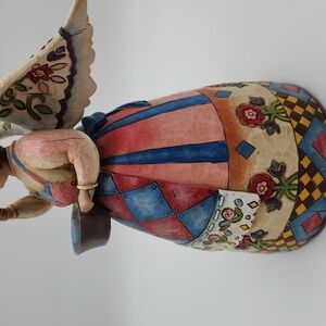This charming angel figurine features vibrant colors and intricate floral patterns. Perfect for adding a touch of whimsy to your home decor.