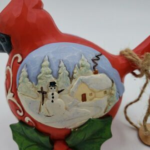 Jim Shore Cardinal Christmas Figure Winters Joy Rustic Folk Art Carved Red Bird.