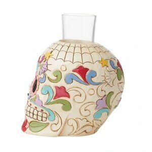 This fantastic sugar skull votive honors the nearly 3,000 year old tradition with bright color and pattern. Designed by renown artist Jim Shore, this charming bust features rosemaling flowers to honor the Day of the Dead custom and celebrate Halloween.