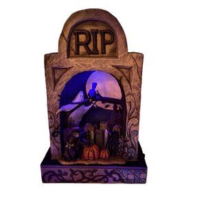 Jim Shore Haunted Eve Halloween Tombstone Figurine With LED Light