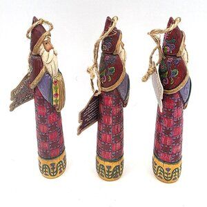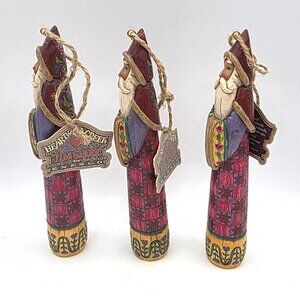 Jim Shore Heartwood Creek 2004 Red Sunburst Tulip Santa 3 Hanging Ornaments 6"