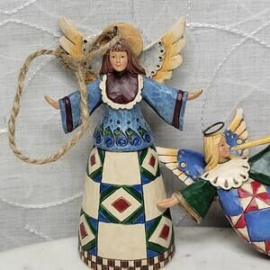Jim Shore Heartwood Creek Angels 2002 Pair Mini 4" Folk Art Patchwork Figurines