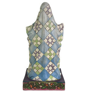 Add a touch of whimsy and charm to your Halloween decor with this delightful Jim Shore Heartwood Creek Boo Ghost Figurine! Crafted in 2006, this enchanting piece features a unique quilt pattern in soothing blue and green hues, making it a standout addition to any collection.