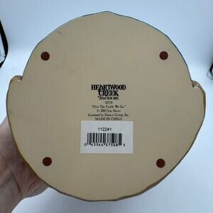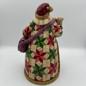 Jim Shore Heartwood Creek O’er The Fields We Go Santa figurine, model 112241, captures the charm of rural Christmas with a vibrant farm scene, quilted coat pattern, and hand-painted details. This collectible features Santa holding a sheep on a wheeled platform, with intricate folk art carving and colorful designs that reflect Jim Shore’s signature style. The piece is part of the Heartwood Creek collection, licensed by Enesco, and dated 2003. Perfect for holiday décor, gift-giving, or adding to a Jim Shore collection.