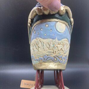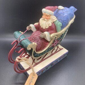 This piece is a Jim Shore's handcrafted Heartwood Creek Santa in his sleigh. The piece has the original paper tag. It was a limited edition from 2021. It measures aprox. 10" x 8". piece is pre-owned, without chips, cracks, or flea bites.