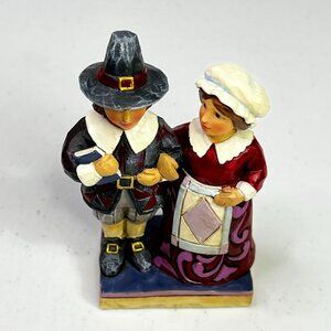 Jim Shore Mr. & Mrs. Pilgrim Mini Thanksgiving Couple Figurine (no box)