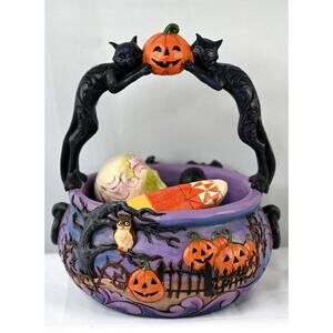 Jim Shore Oh What A Frightful Night 2022 6011172 Halloween Basket w/ Figures