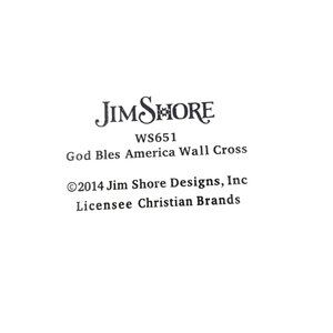 Patriotic Americana Christian Cross. A beautiful addition to any home. Jim Shore's designs are attractive and whimsical. The American Flag in the middle of the cross captures attention to the message of God and Country. A patriotic cross. God Bless America 12'' H Resin with a hook on the back. 2014 Jim Shore Designs.