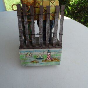 In very nice condition, here is Jim Shore 'Shorelights' Old Salt Evening Star Sea Captain with Cat. 118741 Measures 10 3/4" in height. Colorful with nautical design. Has a pattern on all 4 sides. Adorable cat leaning against the captain. Like all Jim Shore figures it is very detailed. No problems that I see. Box not included.