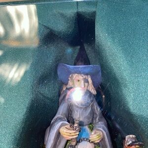 The Jim Shore Wizard of Oz Witch with Flying Monkey Ornament is a collectible decorative piece that captures the essence of the iconic characters from the Wizard of Oz film. Handmade with attention to detail, this 4.5-inch tall ornament features the witch with her famous flying monkey, making it a must-have for any fan of the classic movie. Packaged in a box for safekeeping and display, this 2008 creation adds a touch of nostalgia and whimsy to any collection of ornaments or sculptures. Made in China, this unique piece is a charming addition to any decor inspired by the Wizard of Oz theme.