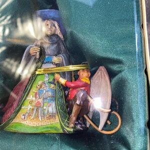 Intricately designed medieval figurine featuring a blue hat and vibrant colors. Perfect for collectors.