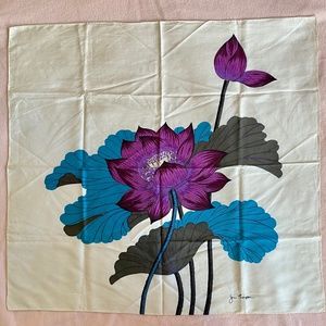 Vintage Jim Thompson raw silk scarve with floral motifs . Thai silk .hand rolled edges beautiful vibrant colors. Size 34" x31"