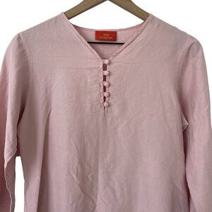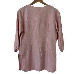 Jim Thompson Top Silk L Pastel Pink Tunic Henley Feminine Minimalist Cottagecore