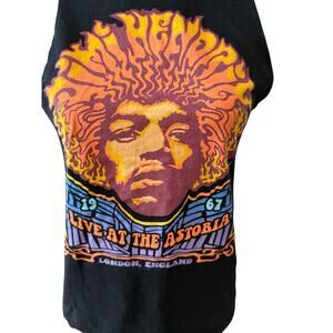 Jimi Hendrix Astoria 1967 London Muscle Tee Shirt Black, size S. Good preowned condition, 100% cotton, raw hems at arm holes,