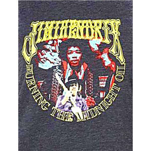 Get a flavor for the experience of a true legend with this juniors' Jimi Hendrix tank top. Made from cotton-rich slub knit, this "Burning the Midnight Oil" tank pays tribute to one of music's most celebrated performers. Soft and lightweight item in burnout charcoal with a flared drop tail hem. 60% Polyester, 40% Rayon.