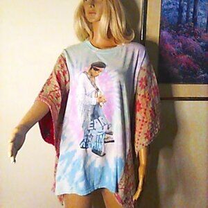 Jimi Hendrix Kantha Tie Dye Upcycled Tunic 2XL & Under Boho Hippie