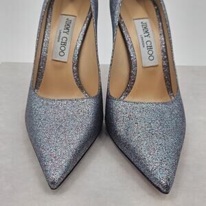 Jimmy Choo 100 Pumps Size 38 Pointed Toe Glitter Heels