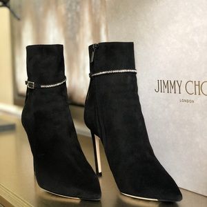 JIMMY CHOO Crystal trimmed leille boots.