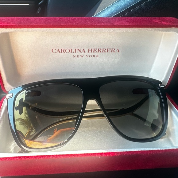 New sun glasses jimmy choo. I don’t have the original box for them but I have this cute Carolina Herrera glasses case