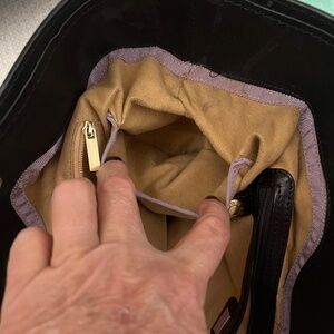 This bag is all black calf skin leather, extremely buttery...its in excellent to brand new condition...as you can see from the pics it has very little wear n tear ...no SCRATCHES, it has a couple indents (very small and unnoticeable) on the bottom...it has an inside deep zip pocket with 2 inside side pockets...on the outside it has a top zip which is a deep pocket as well as 2 smaller zip pockets on the outside (1) on each side also has to magnetic closures for convenience.