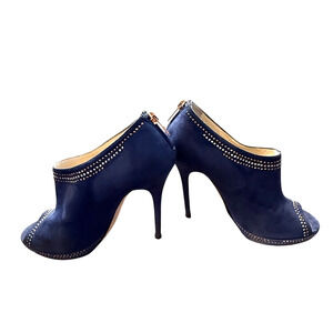 Jimmy Choo 8.5 Blue Suede $995 Glint PeepToe Booties Studded Heels Sapphire BOX