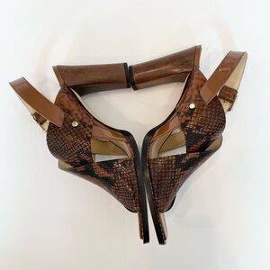 Jimmy Choo Aix 85 Snake Printed Brown Patent leather block heel sandals EU 40