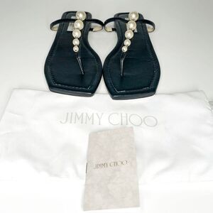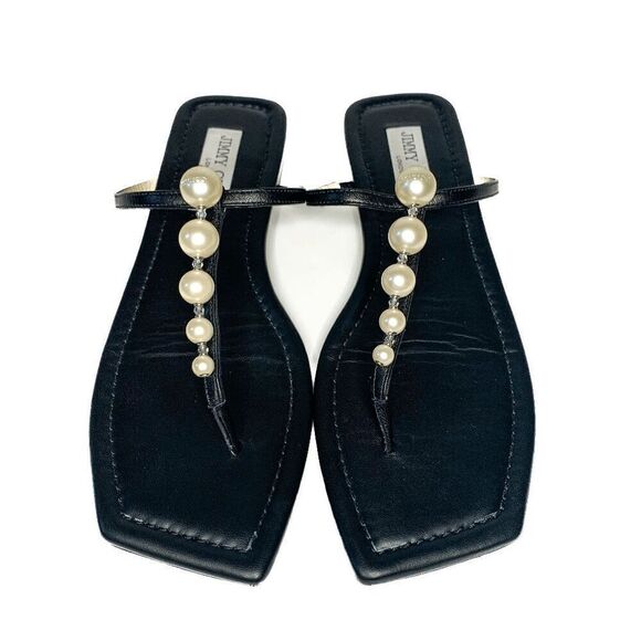 Jimmy Choo Alaina Faux Pearl Embellished Leather Flat Sandals EU 38 US 8 Black
