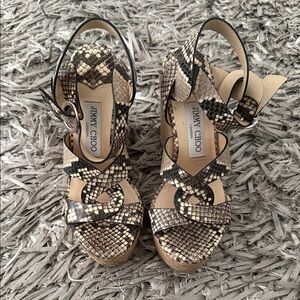 Jimmy Choo | Aleili Snake Skin Embossed Leather Cork Wedges