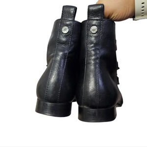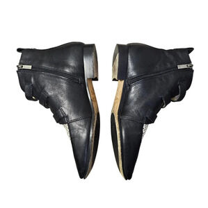 Ankle booties with pointed toe and buckle features provide a chic and modern look, while the zip closure ensures a secure fit.