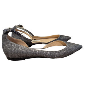 Jimmy Choo Ankle Strap Flats Glitter Metallic Sparkle 37.5 EUC