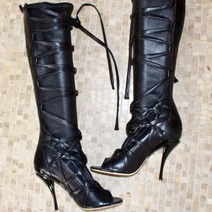 AUTHENTIC. Never worn. Knee high with peep toe. Leather. Woman's size 8 (EU38). True to size. Snug feel, but will stretch. IF YOU WANT MORE PICTURES MESSAGE ME.