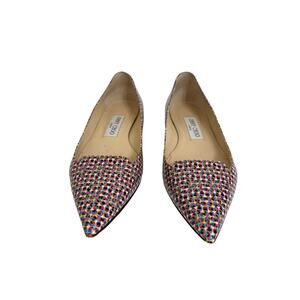 Jimmy Choo Attila Patent Pointed Toe Ballet Flat Shoes Multicolor EU 36.5