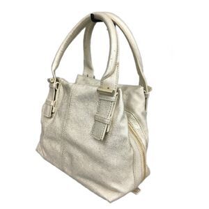 Description: This glamorous Jimmy Choo tote bag is crafted from light gold metallic leather, featuring dual rolled handles, dual zipper closure, and buckle accents. The fabric interior is a complementary shade of dark brown. Made in Italy, this bag exemplifies luxury and craftsmanship.