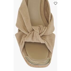 Step out in style with these beautiful Jimmy Choo Avenue wedge sandals! These elegant wedges feature a delicate ballet pink linen upper and a chic square, open toe with a sophisticated metal detail. Perfect for adding a touch of luxury to any outfit.