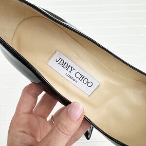 Jimmy Choo Aza Pumps Black Patent Leather Pointed Toe Kitten Heel 40mm 36.5