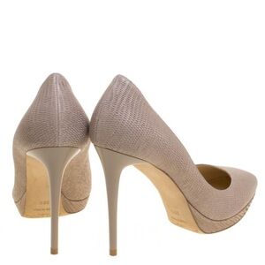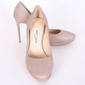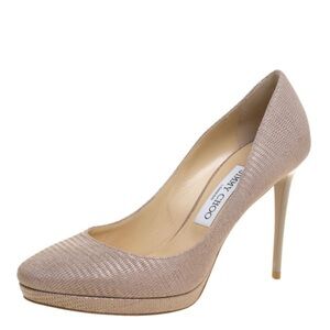 Jimmy Choo Beige Lizard Embossed Glitter Leather Hope Platform Pumps size 38.5