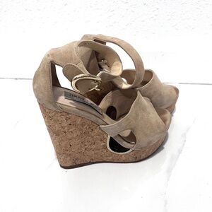 These are Jimmy Choo wedge sandals, a popular style known for combining height with comfort.