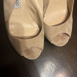 Worn three times! very Good condition ( very minor and not even noticeable toe footprint wear/discolaration on the front open toe part of the heel as shown in pic)