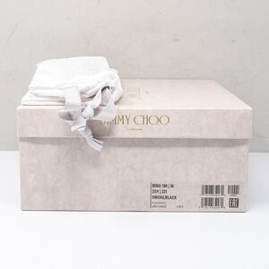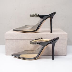 Jimmy Choo Bing 100, Size 36 (6 US) Black Patent Leather Crystal Strap Heels