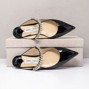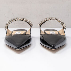 Jimmy Choo Bing Crystal Strap Patent Leather Flat Mules Size 6.5 US (36.5 EU)