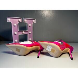 Striking PVC mules with defining upper crystal strap for a luminous finish.