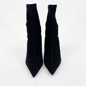Jimmy Choo Black Brin Stretch Suede Pointed Toe Heeled Ankle Boot Bootie IT 37