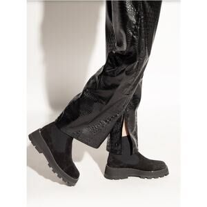 In great pre-owned condition. Platform and heel have been professionally added by a cobbler for enhanced lift. Light scuffing and general wear throughout the exterior suede.
