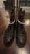Stylish black combat boots with elegant pearl accents. Perfect for a bold fashion statement.