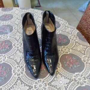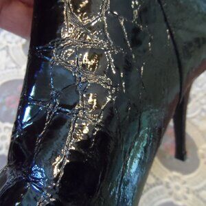 Jimmy Choo Black Croc Embosed Patent Leather Ankle Boots Size 38.5M